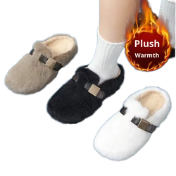 Otoño Invierno mujer cómodo gamuza de felpa para zapatillas con suela gruesa antideslizante transpirable hogar cálido zapatos con piel suave