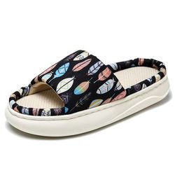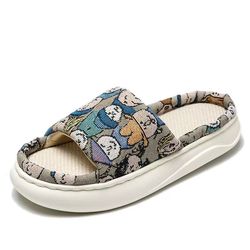 Zapatillas planas de alta calidad para mujer, suela gruesa de lino EVA para adultos, Punta abierta, interior, cómoda, casa de flores, altura, diseño impreso